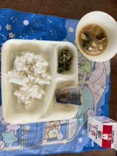 本日の給食です!さごしは、骨も調理員さんごキレイに処理してくださっているので、こどもたちに大人気です。みんな、たくさん食べていました。