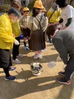 地域の方に来ていただき、七輪を使って餅を焼きました。もちを焦がさず、ふっくらさせるのに苦労していましたが、こまめにもちを移動させながら、上手に焼いていました!