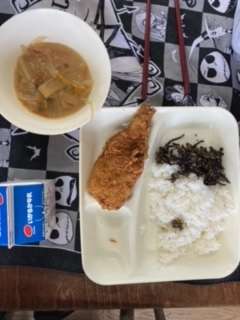 今日の給食です。おわかりでしょうか?今日は牛乳がいかるが牛乳だったのですが、いつもの赤色でないことに子どもたちはすぐ気がついていました!今日もほとんど残すことなく、みんなおいしく給食を食べていましたよ!