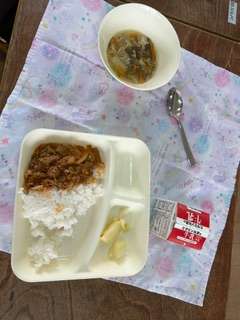 今日の給食、タコライスともずくスープという沖縄料理が出ました!もずくスープは初めて食べた子も多かったですが、「おいしい、おいしい。」とみんなたくさん食べていましたよ!
