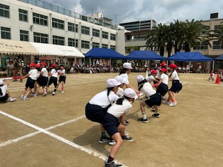 4年生は、個人走、棒引き、リレーに取り組みました。