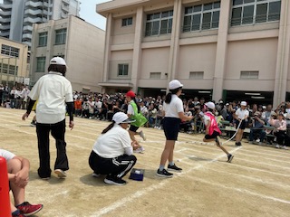 個人走は開会式が終わってすぐのプログラムで、4年生のみんなががんばってくれたおかげで、その後のプログラムもとても盛り上がりました。