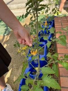 上の写真、分かりにくいですが、2年生ががんばって育てているミニトマトが実をつけ出しました!その調子でがんばって水やりを続けてほしいです。