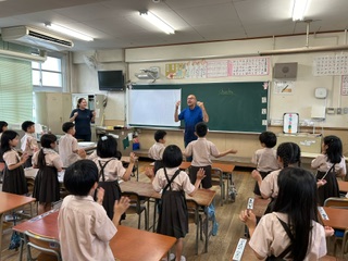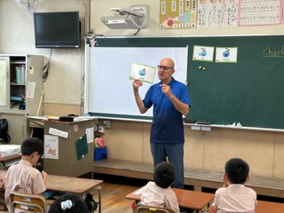 下の写真は一年生、英語活動の様子です。英語に触れるのも、初めてに近い子が多いなか、チャルズ先生が歌やゲームなどを取り入れて、みんな楽しそうでした!チャルズ先生は来週二年生にも英語の授業をしてくださります!
