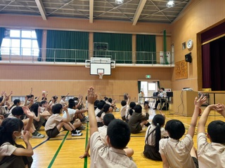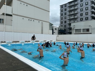 下の写真は二年生「水あそび」の授業の様子です。行事による時間割変更や天候不良で、二年生は、今年まだプールに入れていなかったのですが、今日入ることができました。子どもたちも終わってから「めっちゃ気持ちよかったー」と、とても笑顔でした!