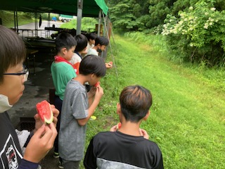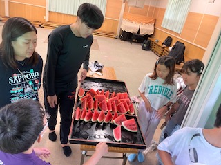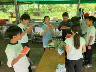 焼き板づくりを終え、スイカもしくはお水をいただきましょう!