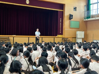 2学期がスタートしました。上の写真は、始業式の様子です。校長先生のお話を聞いたあとは、みんなで校歌を元気に歌いました。