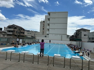 中の写真は、一年生体育科の様子です。久しぶりのプールに、みんな楽しそうでした!