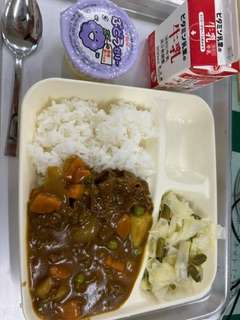 下の写真は、今日の給食です。2学期最初の給食はみんなの好きなカレーでした。ゼリーもついてて、みんな大喜びで食べていました。