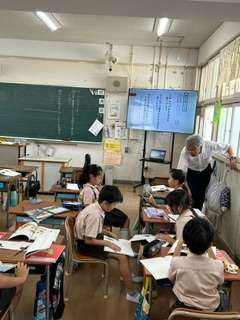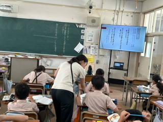 三年生、国語科の授業です。「サーカスのライオン」の学習で、ライオンのじんざの気持ちを考えました。文章から様子や気持ちを読み取り、一人一人自分の考えをもつことができました。