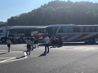 伊賀サービスエリアでトイレ休憩。 バス酔いもなく、順調です。