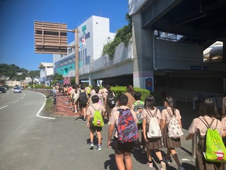 クラスごとに写真をとり、その後、グループ活動を始めます。