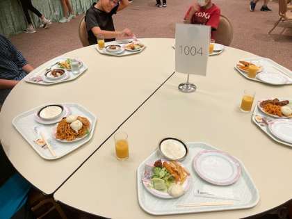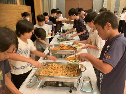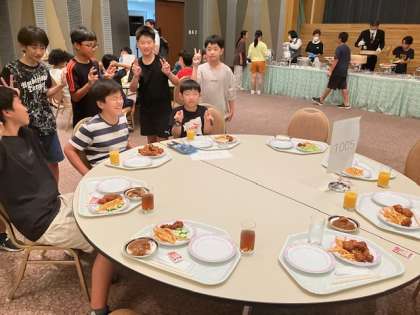 大きな部屋二つ分の夕食会場で、ゆったりと食事ができそうです。