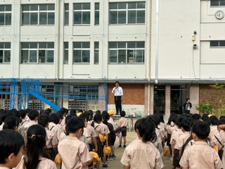 本日の様子です。朝会の様子、今日は校長先生が用事で不在だったので、教頭先生が朝礼に来てくださりました。今月末にある、全校遠足に向けてのお話をしていただきました!