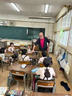 下の写真は、二年生「英語活動」の様子です。チャルズ先生に教えていただくのも本日で2回目!みんな英語であいさつもできましたよ!