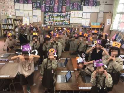 今日はハロウィンということで、一年生がハロウィンの帽子を作っていました!みんなとてもかわいかったです!