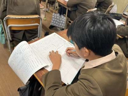 少し緊張した面持ちの子も見られましたが、今まで覚えた漢字を一つでも多く解答しようと最後まで粘り強く取り組んでいました。