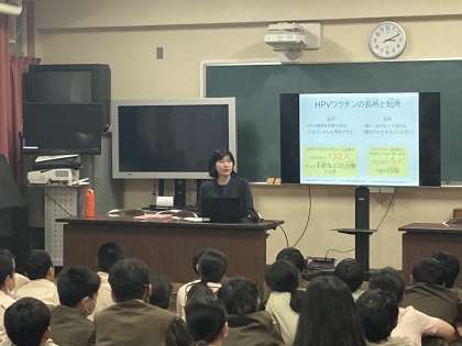 下の写真は、6年生保健指導の様子です。「ワクチン」について、わかりやすく教えていただきました。