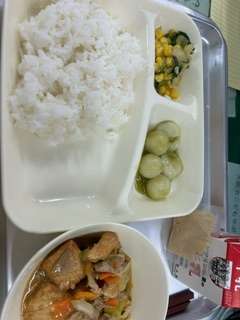 今日の給食です。抹茶の蜜がかかった団子にきな粉もついていました!余っている分はどのクラスも取り合いだったようです。