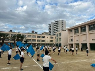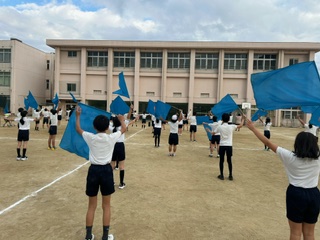 下の写真は、六年生体育科の様子。木曜日の「団体演技発表会」に向け、練習も本番さながらという感じでした!