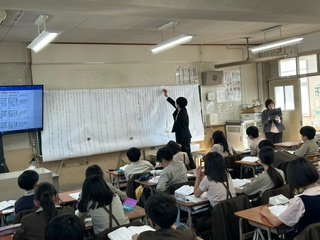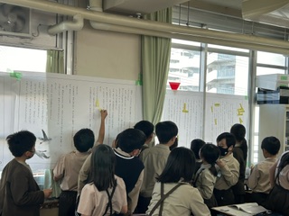 五年生国語科「大造じいさんとがん」の単元で研究授業を行いました。子どもたちは教材文から、大造じいさんの性格が分かるところを読み取り、付箋を貼って、友だちと意見を交流させていました。