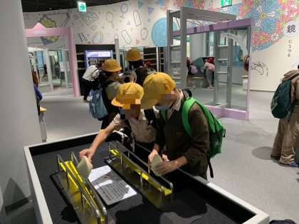 プラネタリウムは撮影できませんでしたが、グループごとに展示されている用具を触りながら楽しんでいました。