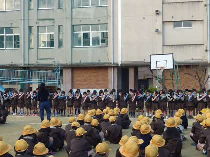 4年生の発表のときにはうす雲に隠れていた太陽が顔をだし、ちょうどスポットライトを浴びるような感じで発表ができていました。さすがです!