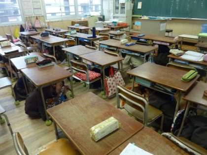 子ども達はさっと机の下にもぐり、地震の際の心得など振り返りました。