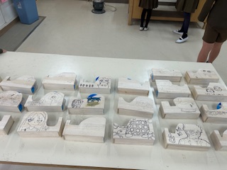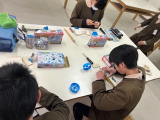 六年生図工科、卒業制作でテープカッターを作っています。今日はトンカチなどを使って本体を組み立てました。次からは色塗りの作業に入ります!