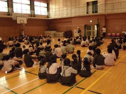 1年生は、小学校での初めての遠足ということもあり、現地(夢洲)までは、6年生と行動します。今日は、その顔合わせや説明がありました。