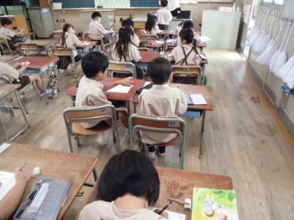 1年生の教室では、昨日の学校探検で、お世話になった2年生へお礼のお手紙を書いていました。心をこめて、丁寧に字をかいたり絵をかいたりしていました。きっと2年生も喜んでくれますね。