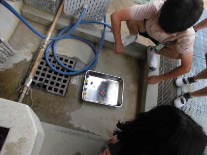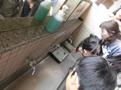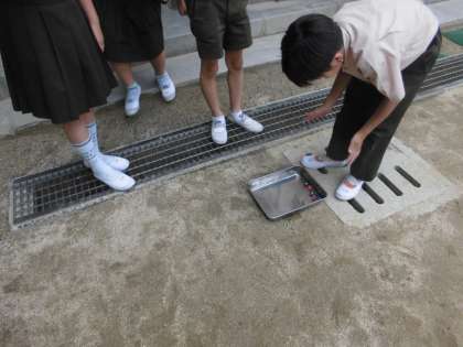 ビー玉を使って、高いところから低いところへと水が流れるしくみになっていることに気づきました。ビー玉が排水口に向けてころころ転がっている様子を観察することができました。新しい発見があって楽しいですね。