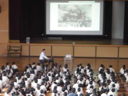 今日の朝会では、校長先生から「戦争」についての話がありました。