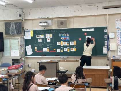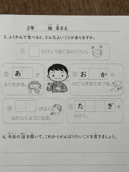 噛む回数が多い食べ物や少ない食べ物についてグループわけをしたり、よく噛むことでどんなよいことがあるのかなどを考えたりしました。