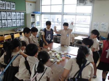 お店を回るだけでなく、校舎内にちりばめられた「かくし文字」も探しました。