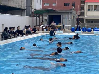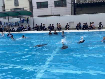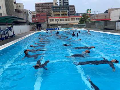 浮き方や浮いたままで進む方法を学び、服やくつも浮力になるので、脱がないことも知りました。500mlのペットボトルを使用し、頭の下に枕のように置くと浮きやすかったです。また、ペットボトルには、少量の水を入れるとよいことも学びました。