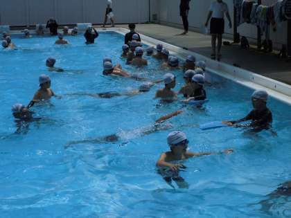 6年生では、25メートルを泳ぐことが目標となっています。今日は、得意な児童が苦手な児童に教えるという活動を行いました。息継ぎの仕方や、手のかぎ方など、とてもわかりやすく説明したり、見本をみせたりしていて、私たち教諭も感心するほどでした。その結果、25メートルを泳ぎ切る児童が増えました。たった15分ほどの活動でしたが、効果抜群!!プールサイドから「がんばれ!」「あと少し!」と応援する姿もすばらしかったです。子供たち同士で学び合い、高め合い、とっても素敵な時間となりました。