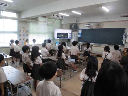 校長先生から1学期の子供たちの活動の様子について、画像付きで紹介がありました。他の学年の様子もよくわかりました。学校目標や学年目標、学級目標を意識して、頑張った人が多かったとたくさんほめてもらいました。