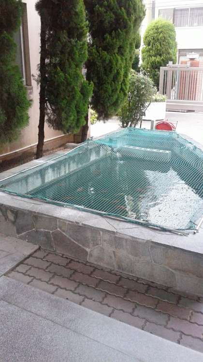 緩んでいた、池の網を管理作業員さんが、きちんと張り直してくださいました。これで、鳥が来ても鯉は安心です。
