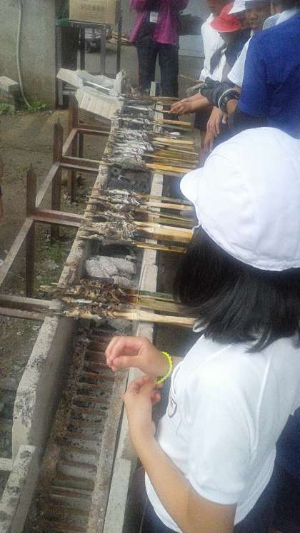 つかんだ魚は、塩焼きに! 串うちも、自分でやって、いただきました。