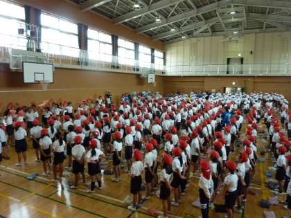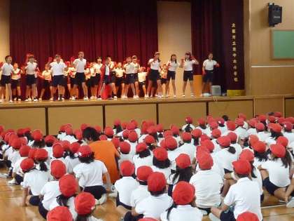 講堂の中に応援団の子どもたちの声、そして、それにこたえる児童・園児の声が響き渡りました。