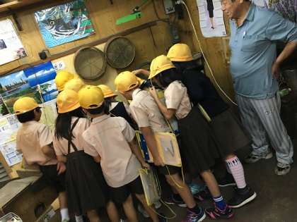 どのグループもお店の方の話に、「へ〜」「すごいなあ」「たいへんやなあ」など思わず声が出たりしていました。鰹節屋さんでは削りたての鰹節の試食もさせていただけたようです。