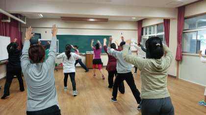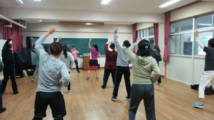 保護者がエアロビクスで汗を流しました。