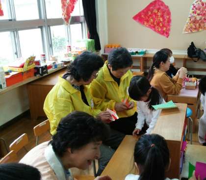 折り紙や、かみでっぽう、あやとりなど、一緒に遊んでいただきました。