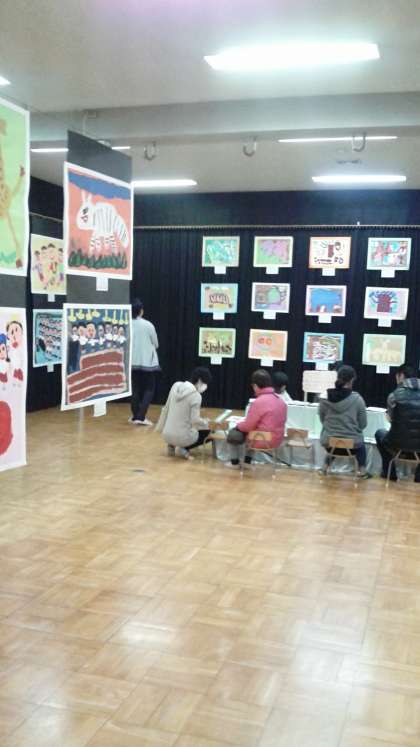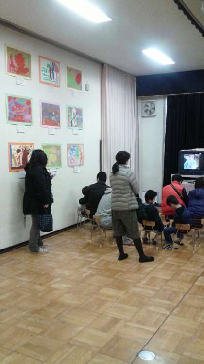 遊戯室には、絵の展示と製作の様子をDVD展示しました。