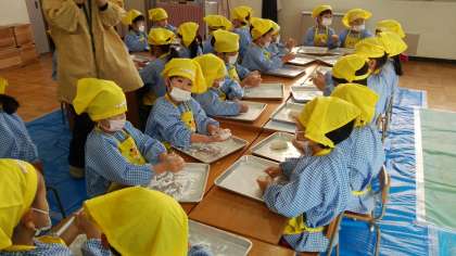今日は、もちつきを行いました。PTAの保護者の方、地域の方の、ご協力で、楽しいもちつきができました。