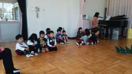 劇に登場しない子どもたちも真剣な表情です。全員の気持ちが一つになり劇に向かってます。