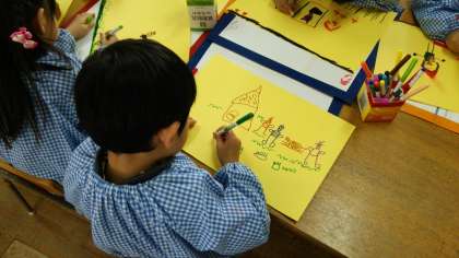 狼の悲しい顔や、いっぱい入れられた石を一生懸命かいています。