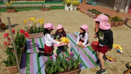花びらでままごとしてり、ござを敷いて、涼んだり。。。