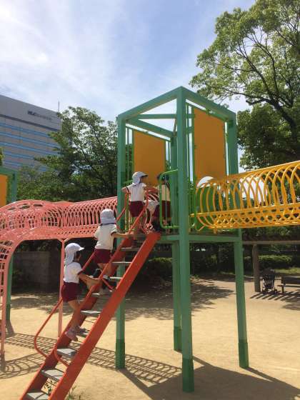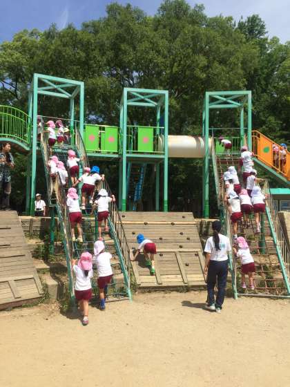 記念写真を撮って、大きな遊具であそんでいます。
